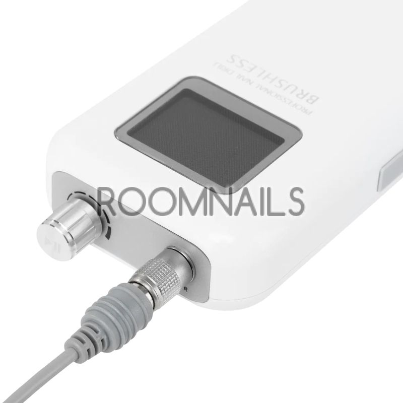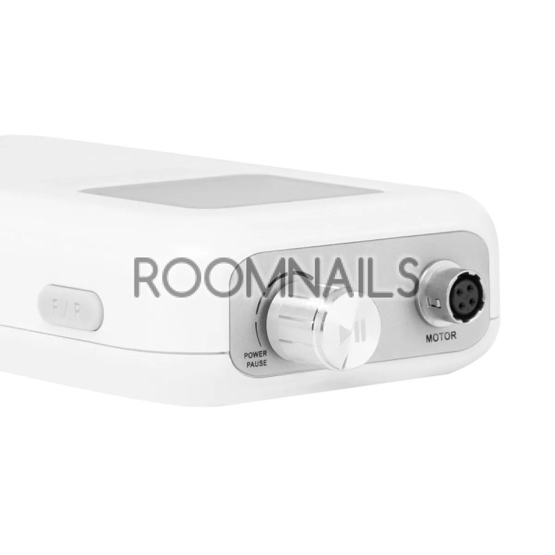 Минималистичният пластмасов корпус в бели тонове съчетава издръжливост с лесно почистване и добавя естетически приятен визуален елемент към работното място. Компактните размери и лекият дизайн правят тази фреза идеална както за малки работни места, така и за транспорт – идеална за мобилни услуги. Гумираните елементи отдолу осигуряват по-добра стабилност, предотвратявайки плъзгането на устройството по време на употреба, осигурявайки безопасна и комфортна работа.