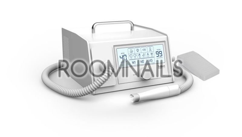 Тази вакуумна бормашина за нокти се предлага с безчетков наконечник HMD04 , който позволява скорост до 40 000 оборота в минута .