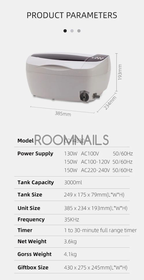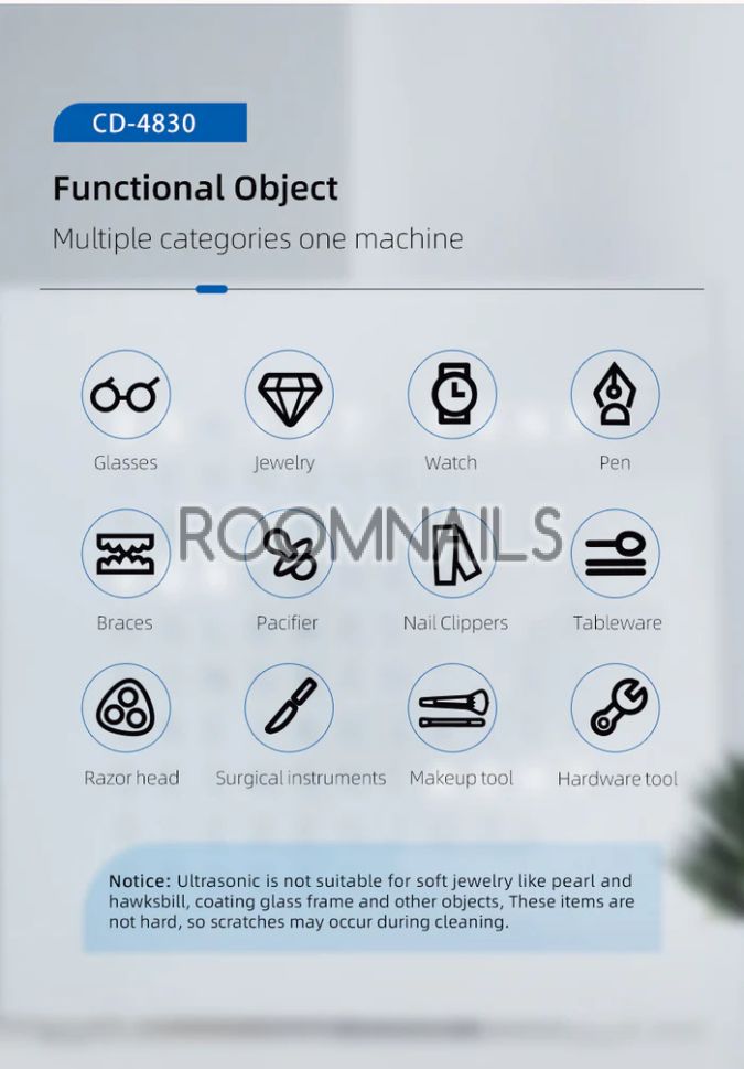 Подходящ за почистване на инструменти за маникюр, продукти за обработка на бижута, стоматологични инструменти и други.